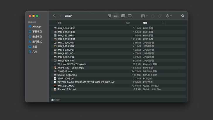 另外平常也有大量素材和剪輯好的影片,因此我選擇了三部影片做測試。為了降低讀寫時間,其中是兩部從 4K 壓縮到 720P 的影片,將檔案大小壓在 100MB/s。以及一部 iPhone 15 Pro 拍攝的 4K 短片。三部影片的內容都有完整救回,內容也都可以正常播放。兩部 MP4 影片的檔名變成都變成「檔案名稱遺失的.mp4」,而「IMG_0277.MOV」則變為「FILE1.MOV」。