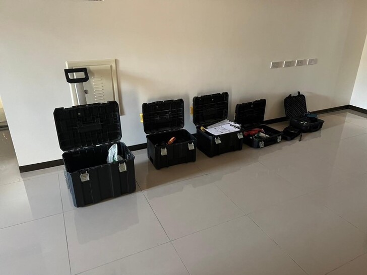 一進門他們先是放好工具箱,大大小小的一字排開很是壯觀
