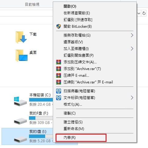 -打開檔案總管,然後右鍵單擊存儲丟失檔案的外部存儲裝置(隨身碟)。