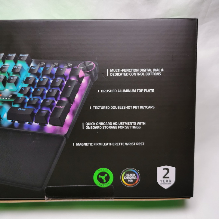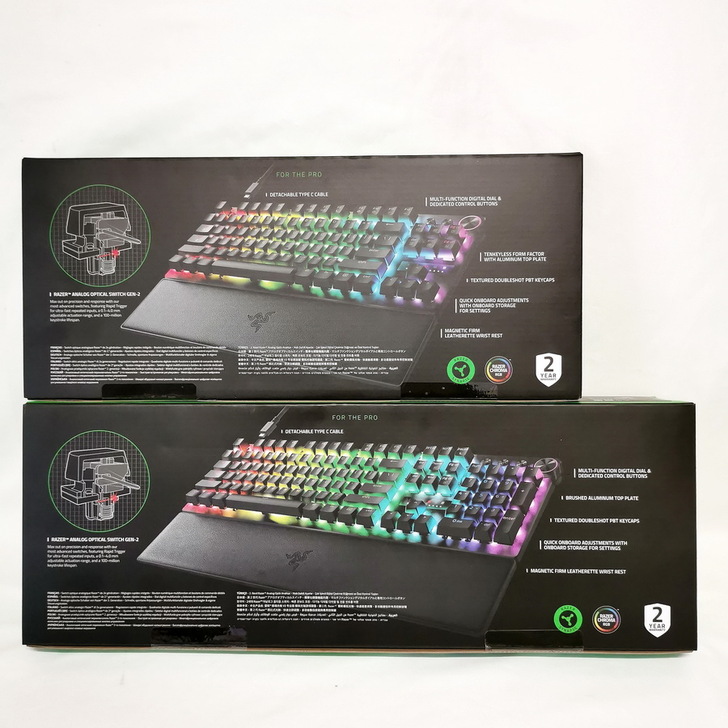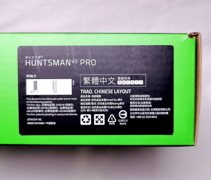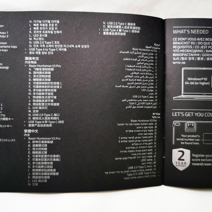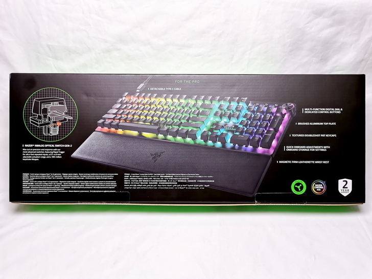 ▼ 外盒背面 標列出 Razer Huntsman V3 Pro 諸多特色,最重要的當然是擁有 兩年保固。