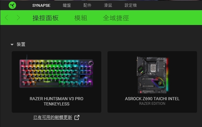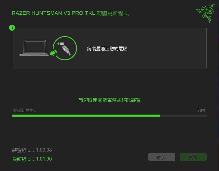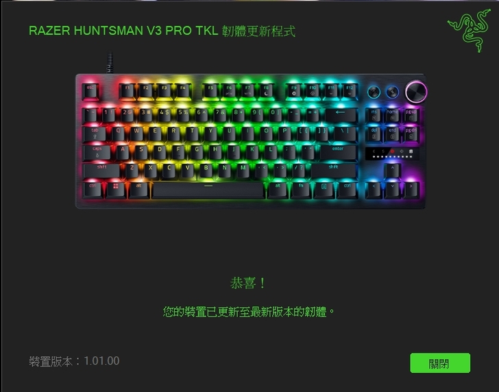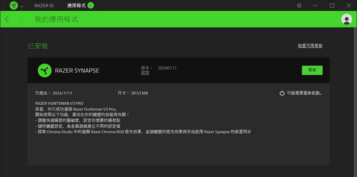 ▼ 另外在安裝 Razer Huntsman V3 Pro TKL 時,跑出有韌體需要更新,當然也順手幫忙更新了。