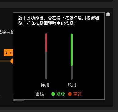 ▼ 再往下還有個 快速觸發 可以開啟,可以設定 快速觸發 鍵程,旁邊的說明也圖示開啟後的不同。