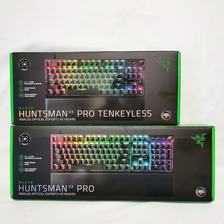 這次拿到開箱的為 Razer Huntsman V3 Pro 及 Razer Huntsman V3 Pro TKL,從包裝外盒就可以明顯感受大小的差別了。