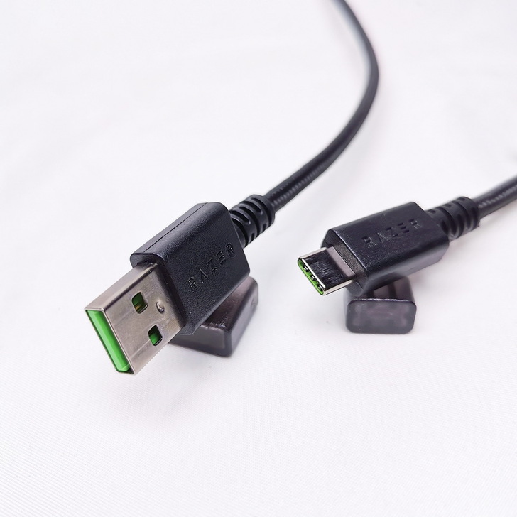 ▼ 雷蛇 Type C 傳輸線 - 接頭端都有保護套,兩端都是標誌性的綠色,線材上面都有 RAZER 字樣。