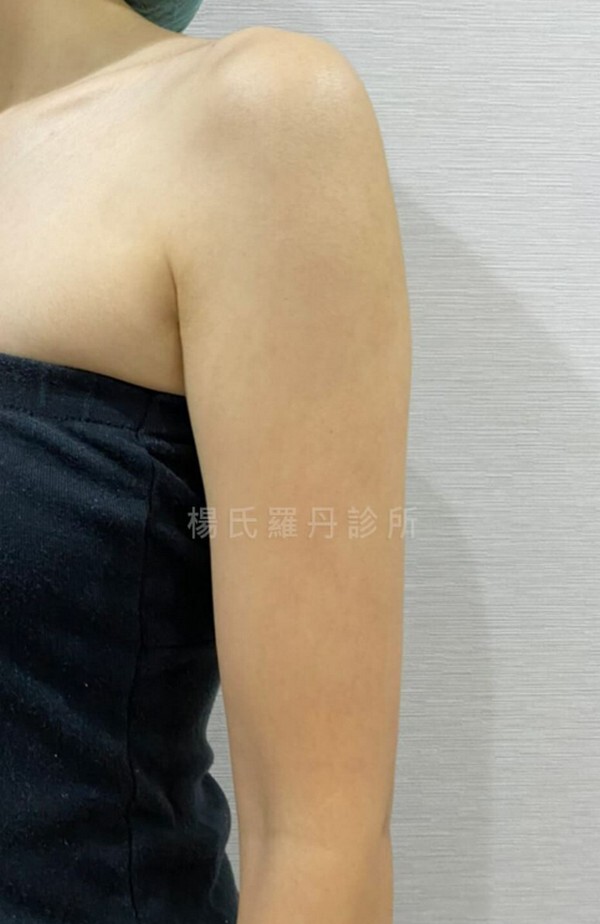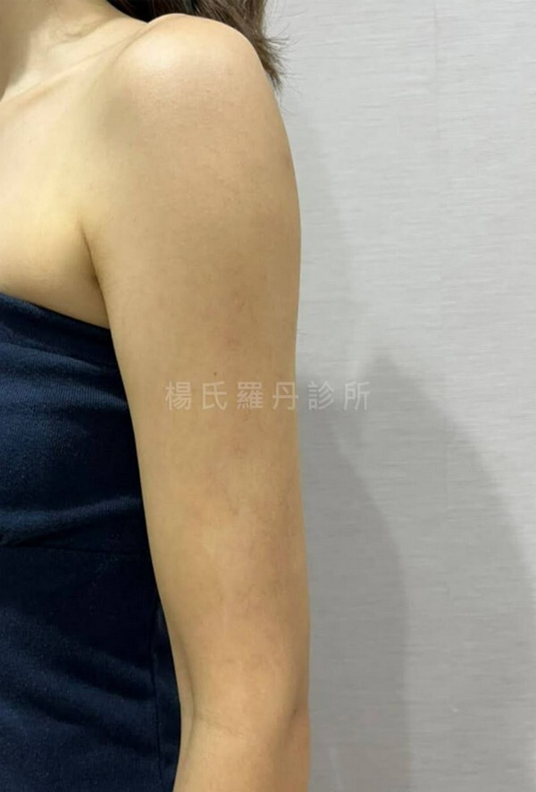 到現在已經過了四個月,天氣漸漸變熱,露出手臂的季節又到了,同時也是瘦手臂的效果最顯著的時間,真是太完美了,開心!對了,雷射減脂手術後的傷口極小,就像被蚊子叮的疤痕一樣大,再過一陣子,應該就看不清楚疤痕了~只能說這次做的手臂減脂,雕塑的成果我實在是太滿意了,而且手臂瘦了,上半身看起來也更顯瘦了!謝謝超厲害超專業的賴斯敏醫師,也謝謝新竹羅丹診所的團隊,賜給我一雙美麗的手臂!