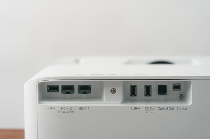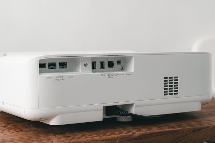 EH-LS650上方備有一顆3600流明的雷射光源,對比度也來到了 2,500,000:1,最大投影畫面可達120吋,再較亮的環境下也可以保有清晰的畫面,投影方面這裡採用前投超短焦的設計,在機身尾部距離牆壁 15 公分處就能投放 80 吋的畫面,而距離40 公分則是可以投放 120 吋的畫面