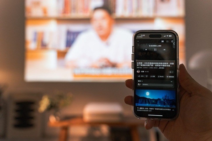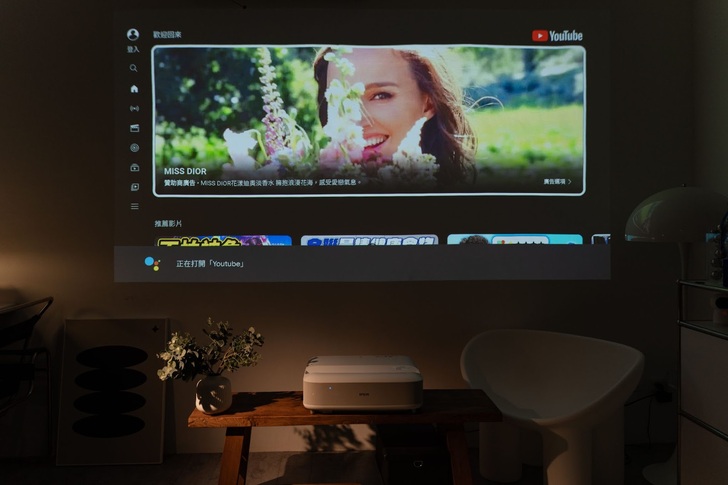 另外如果是在家中使用同一組無線網路的狀況下,也可以輕鬆做到智慧電視無線投放,用手機打開上面串流功能,就可以輕鬆把想看到Youtube頻道內容傳到投影機上面。
