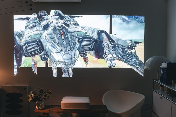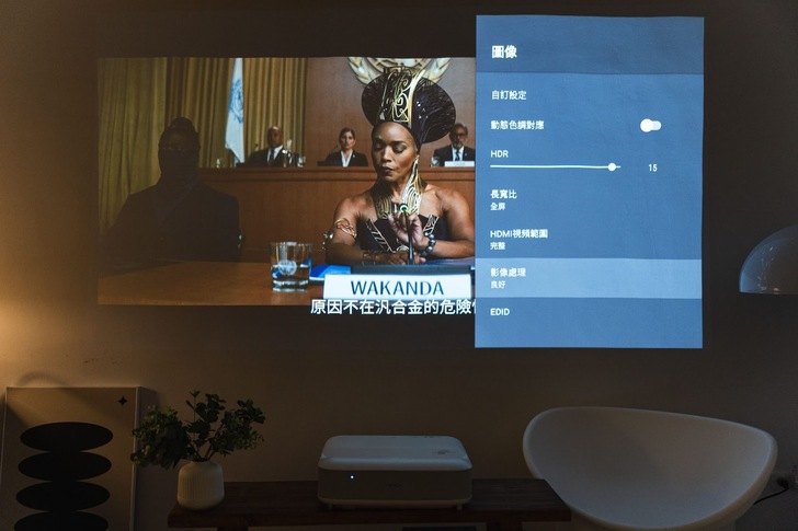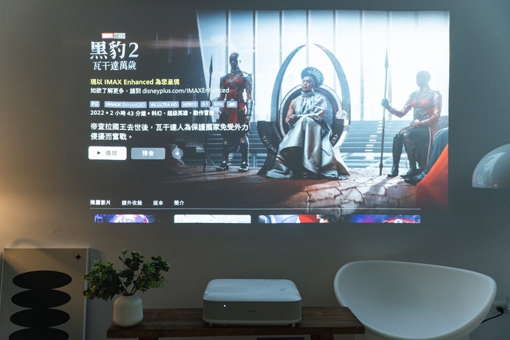 Epson EH-LS650 平時就算沒有觀影,也可以當作背景牆做使用,拜雷射投影所賜,使用時間可高達 20,000 小時 ,諾大的畫面也可以讓你的客廳看起來更有氛圍,更愜意