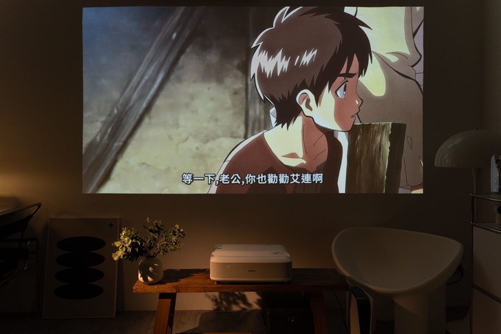 再來看看飽和度較高的動漫片「進擊的巨人」,色彩鮮明濃郁,原廠這次的4K UHD-Pro的調校果然不是蓋的,從來沒想過原來投影機也可以投射出這麼濃郁的色彩,真是大飽眼福。