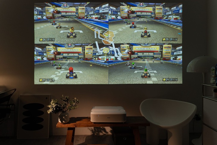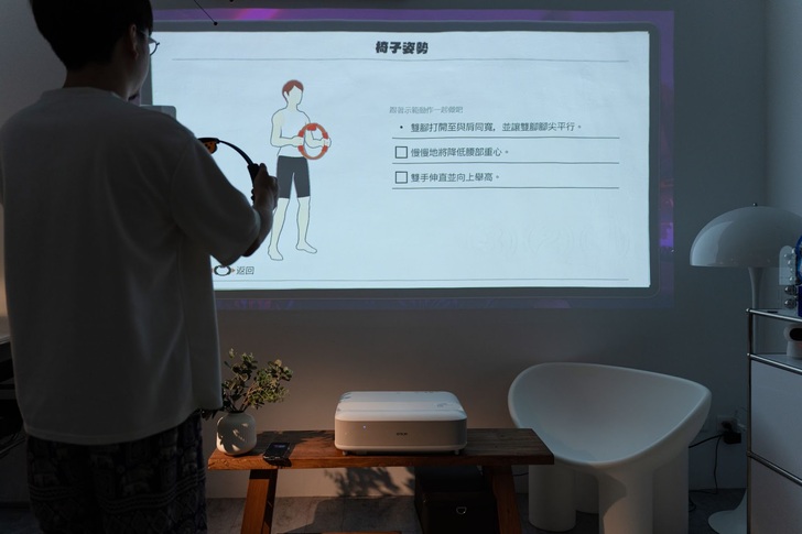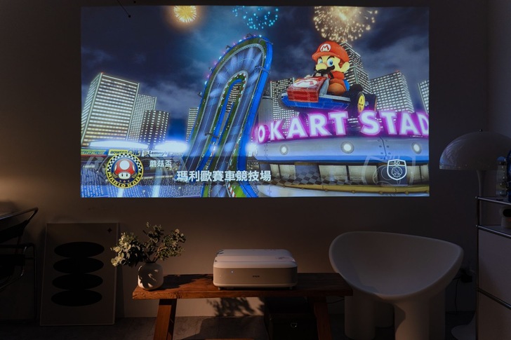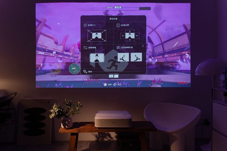 那如果是Switch玩家呢?過往投影機其實對於Switch玩家會比較不友善,因為大多switch遊戲需要多人站在畫面前動作,而以前的投影機就會很容易擋到投射路徑。