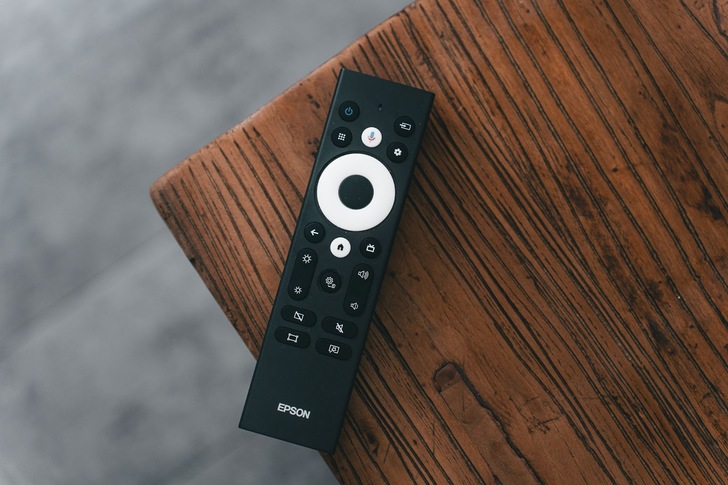 EH-LS650專用遙控器,跟過往投影機的遙控器比起來,現在的Epson遙控器簡約許多,並且內建Android TV,可以直接使用語音輸入。