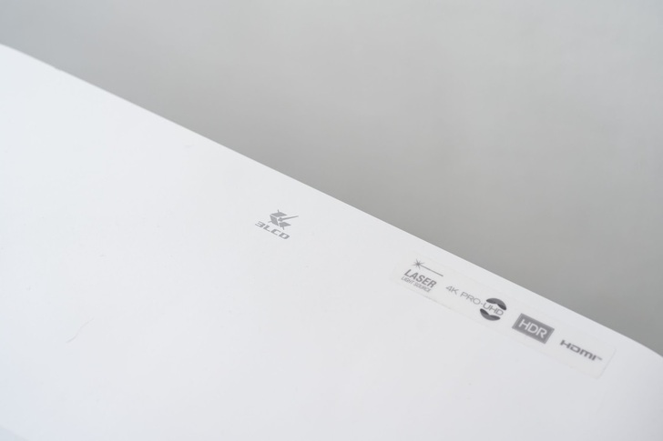 機器後方印著Epson 獨有的3LCD投影技術,可以讓投影的畫面呈現真實的色彩,有興趣的朋友可以google一下3LCD技術的強大,另外還有雷射光源與4K等字樣標示。