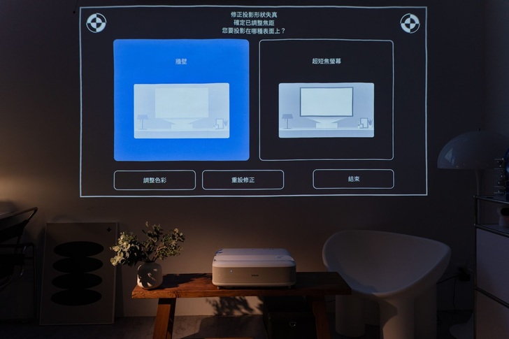 第二步可選擇你的牆面,也可以針對牆面的顏色去調整色彩,如果你是投影布幕,也有對應的解決方針。