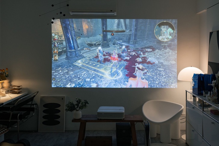 實際體驗下來真的非常痛快,大畫面帶來的震撼感絕對有家庭劇院感覺,再加上4K的解析度,如同在客廳享受2個小時的個人劇院,雖然畫面旁邊有開一盞小燈,但實際體驗上基本上不太會干擾太多。