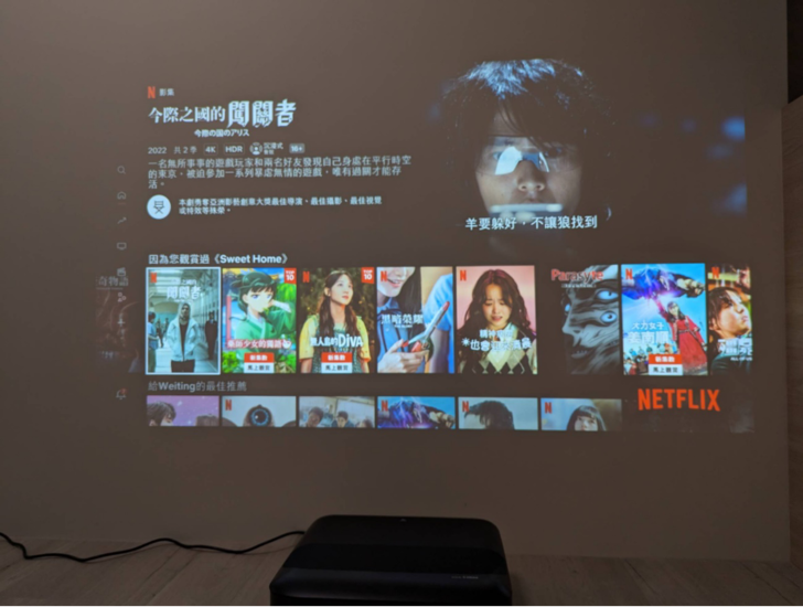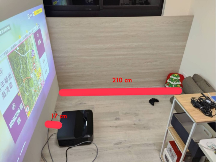 目前家中的工作室有設置一台 BenQ TK700STi ,主要是小孩睡著後,避免在客廳使用電視吵到小孩使用;而這台 TK700STi 的規格為短焦投影機在房間距離不夠的情況下,只能投出 60 寸左右的螢幕,這次所試用的 Epson EH-LS650 超短焦就不太受限於家中空間限制,僅需要與牆面保持17公分的距離,就能輕鬆投射出大約80英寸的清晰畫面,也無需大量占用空間,方便地在家中創造出小型家庭影院,還能保有不錯的影音體驗。在這樣的背景下 Epson EH-LS650 4K電玩雷射大電視展現了其獨特的價值。也正是這種設置方式保留了居住空間的靈活性,不會干擾到孩童遊戲區或家庭成員的正常通行,也能為家庭帶來了豐富的影視和遊戲體驗。