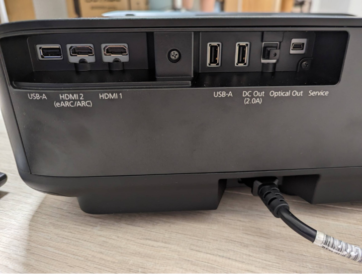 (圖片:後側支援USB-A、HDMI2 (eARC/ARC)、HDMI 1、 USB-A、DC Out (2.0A) Optical Out 、Service)