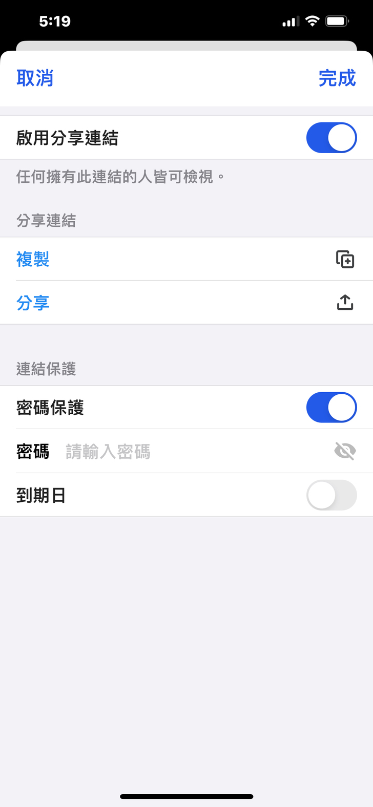 ▼你也可以創造一組分享連結,把你心愛的照片分享給其他人,用通訊軟體就可以傳了。還能夠設密碼保護,以免給其他不相干的人看到哦!