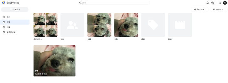 ▼BeePhotos很棒的是,它也會自己辨識照片的類型,幫你做好分類,當我上傳我家毛孩的照片之後,它就自動幫我分類在「寵物」的類別。