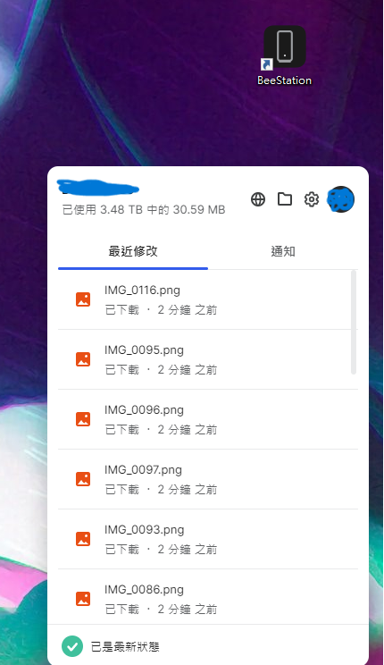 滑鼠點擊照片中BeeStation應用程式的捷徑之後,就可以看到你的BeeStation最近新的存儲動作,當然你也可以點擊資料夾或以網頁連線的方式看到你所有的儲存資料。