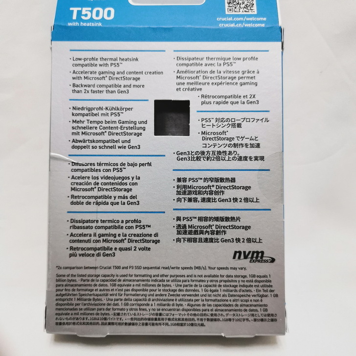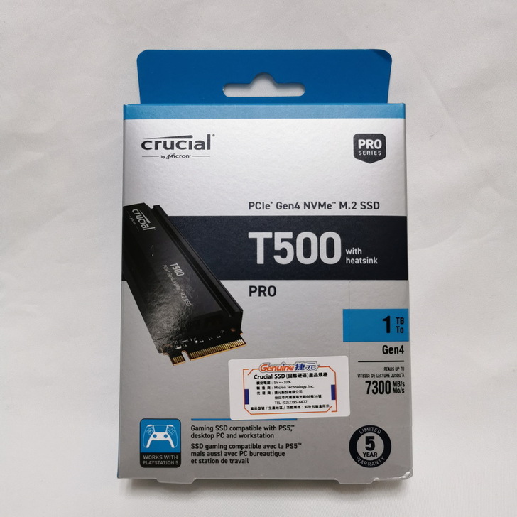 這次要開箱的 美光 Crucial T500 1TB Gen4 NVMe SSD,除了有更快的速度外,已經含原廠散熱器,對於直接擴充 PS5 完全不是問題,重點是有了散熱片的加持,長時間玩遊戲再也不怕有過熱掉速問題。
