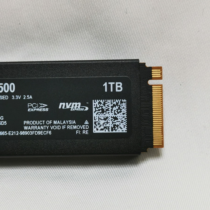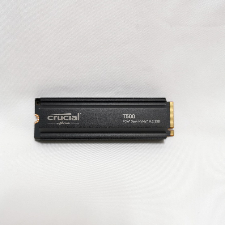 ▼ Crucial T500 SSD 原廠出貨就已標配鋁質金屬霧面磨砂質感散熱片,對於散熱有著優異的幫助。
