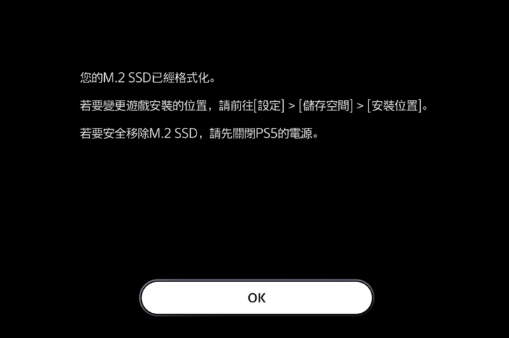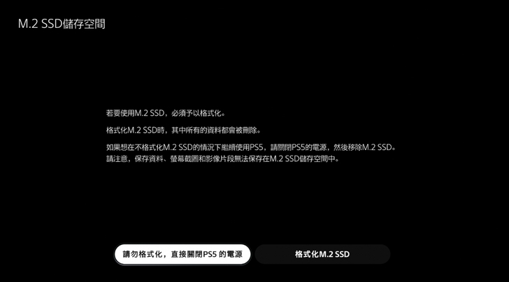 ▼ 安裝好 Crucial T500 1TB SSD 後,PS5 一開機就會提示要 格式化。