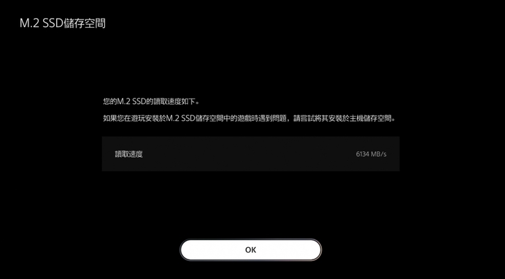 ▼ 格式化 M.2 SSD 時會順便測速,PS5 測出 Crucial T500 1TB SSD 讀取速度 6134 MB/s。