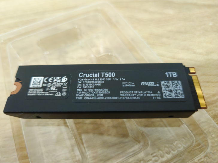 ▲Crucial T500 1TB PCIe Gen4 NVMe M.2 SSD 含散熱器
