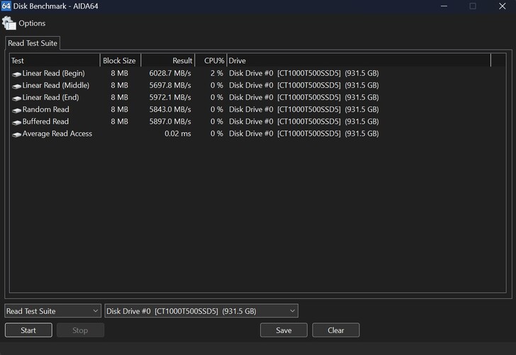 ▲使用AIDA64做Read Test Suite,可以看到非極限狀態都有6000MB/s2左右的速度!