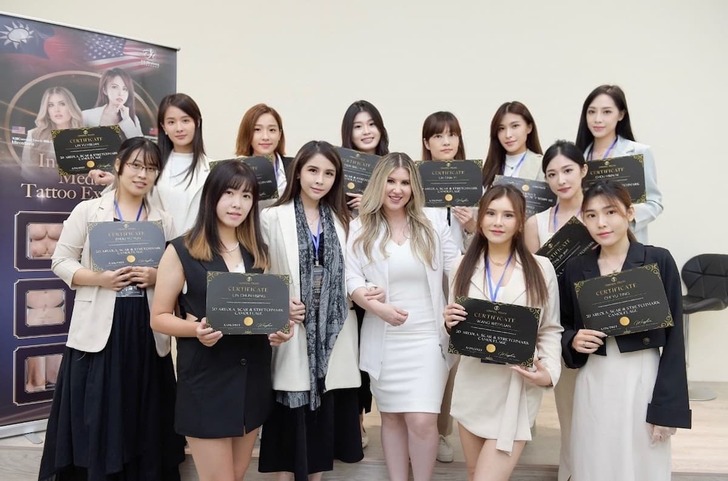 圖說:美國Conceal Touch創始人Miroslava、梵天美學紋繡老師Sunny及學員合照。(圖/梵天國際紋創美學)