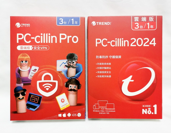 ▼ 兩個盒裝為 PC-cillin Pro 跟 PC-cillin 2024 雲端版,PC-cillin Pro 包含了 PC-cillin 2024 雲端版 + 趨勢科技安全 VPN。
