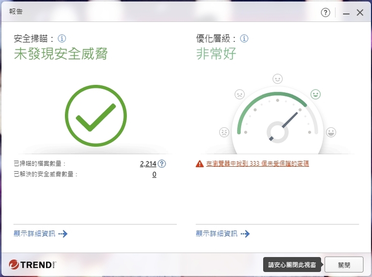 ▼ 電腦健檢完後會有視窗顯示健檢結果,當然也順便對電腦做了優化。