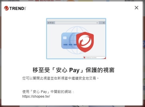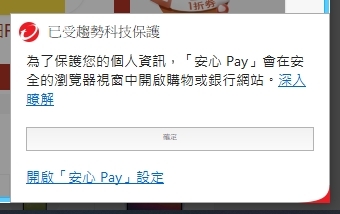 ▼ 只要開啟購物網站,就會彈出視窗通知已經開啟 安全瀏覽器視窗。