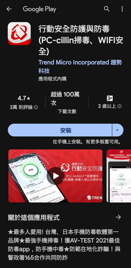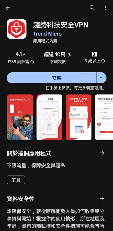 【安卓手機 安裝 趨勢科技 行動安全防護 + 安全 VPN】