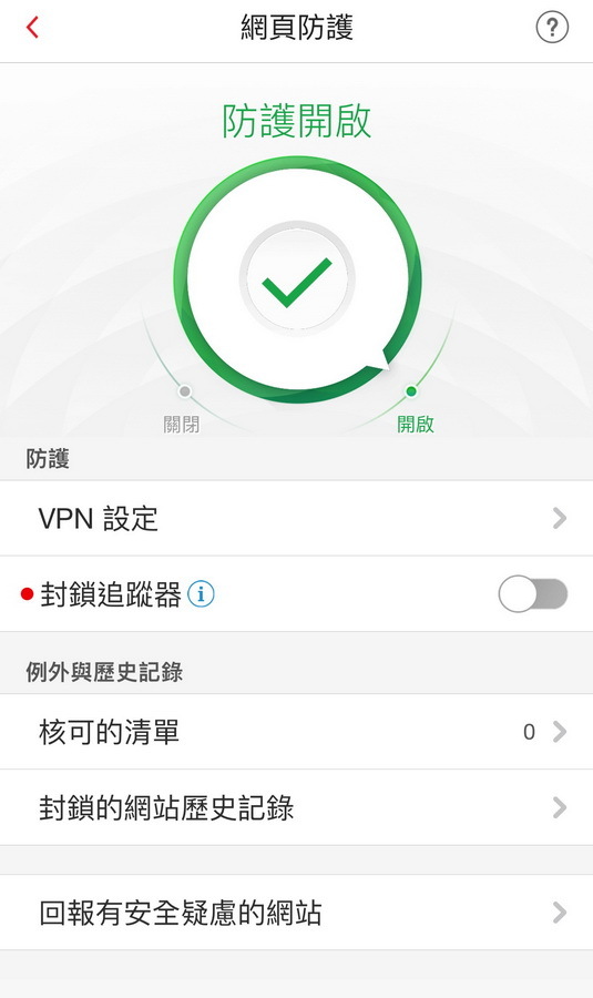 ▼ 趨勢科技安全 VPN 設定介面非常的簡單,甚至可以直接看 Wi-Fi 有無問題。