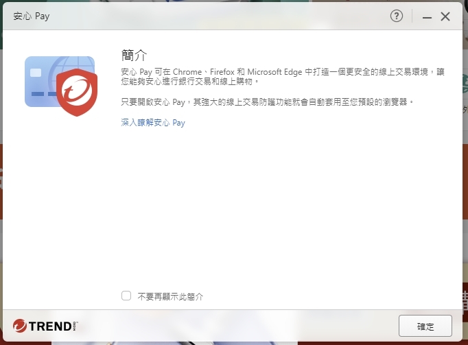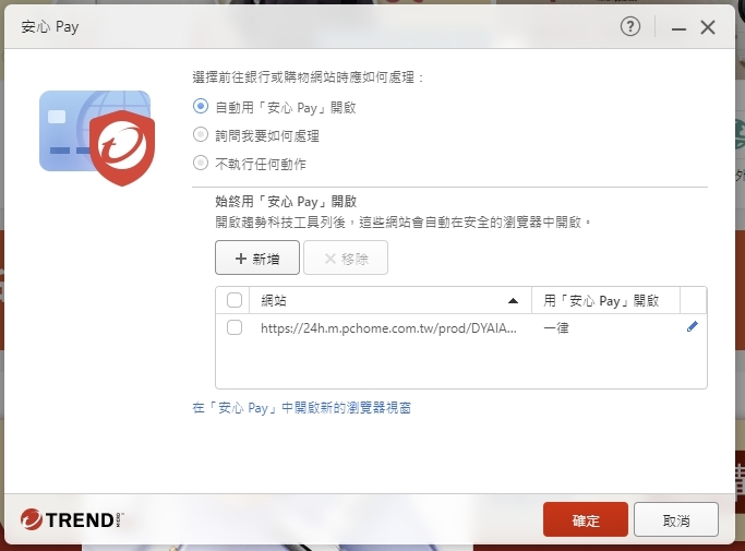 ▼ 只要開啟 安心 Pay,強大的線上交易防護功能會自動套用自 預設瀏覽器。