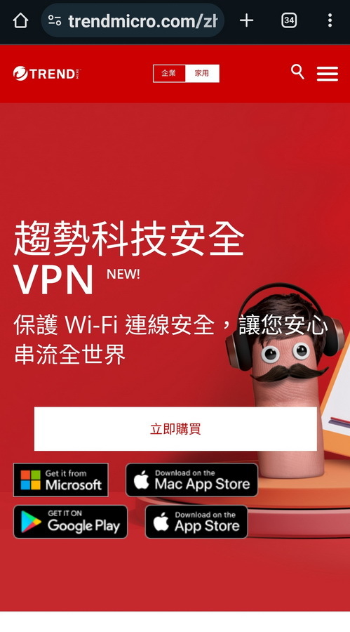 ▼ 選取 趨勢科技安全 VPN,同樣選擇裝置的系統 引導至下載APP。