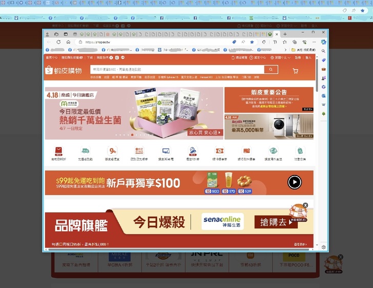 ▼ 現在只要開啟 蝦皮購物,安心 Pay 就會自動開啟 安全瀏覽器視窗,不留痕跡安心購物。