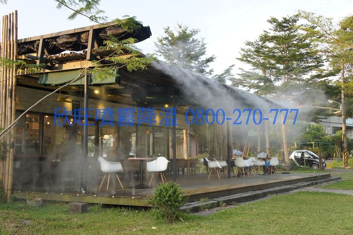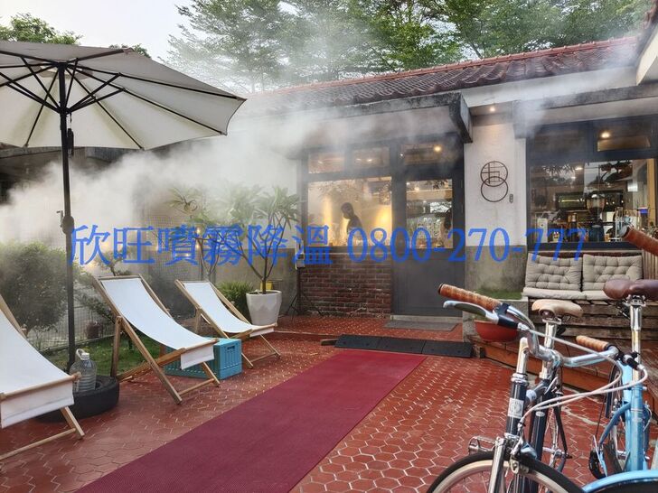 利用噴霧造景系統,有效降低周邊溫度及蚊蟲侵擾,提供清涼宜人的用餐休憩環境,也能達到景觀美感呈現。