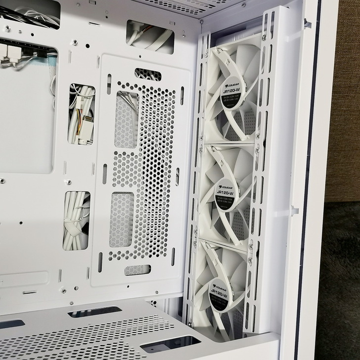 這次在開箱 COUGAR UNIFACE RGB 時,確實是感受到有超高的性價比,尤其是出廠還內建 四顆 120mm ARGB風扇,而且還可以另外再加裝水冷跟風扇,機殼最多可以安裝到9顆風扇,對於散熱效果真的非常好;四重防塵濾網 對於防塵真的很有效,尤其白色機殼更怕灰塵,磁吸式防塵濾網 要清洗更是方便;ARGB/風扇集線器 讓線材的整合與整理非常方便。