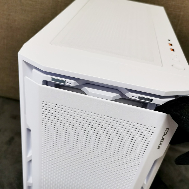 ▼ 前面板 右上方有 COUGAR字樣,而且前面板還是磁吸式設計,輕輕一拉就可以拿下來。
