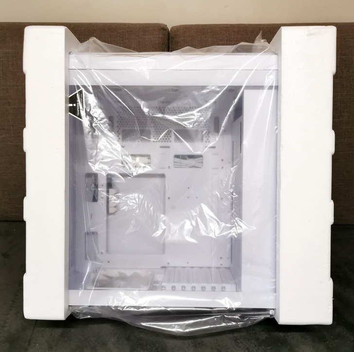 ▼ 外箱正面 大大的標示出 機殼型號,右上角的貼紙照片可知箱內是白色機殼。(另外還有黑色)