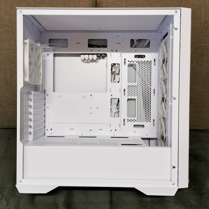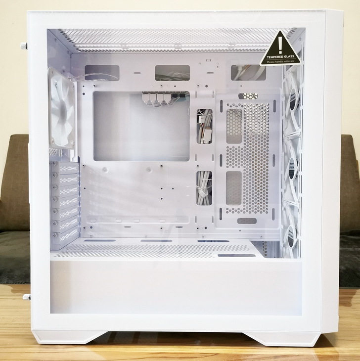 ▼ 經由 側透鋼化玻璃 看內部,就可以清楚的看到有設計諸多走線開孔。