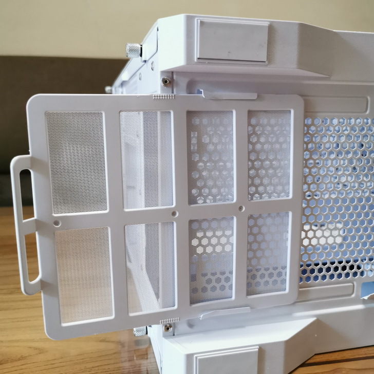 ▼ 另一邊的側板也有散熱孔,散熱孔上面也有 磁吸式濾網,這樣側邊裝了風扇,也不擔心過多灰塵進入機殼內部。