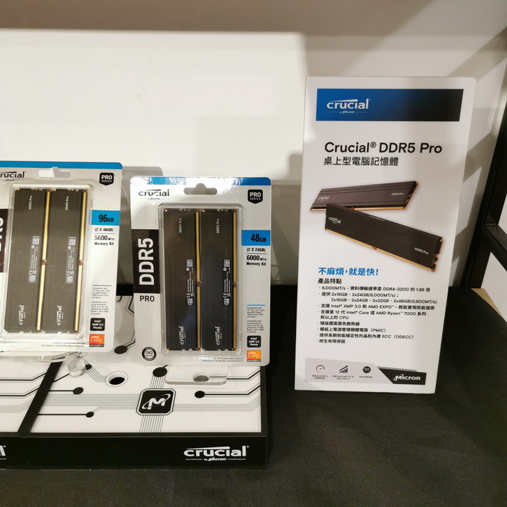 ▼ Crucial DDR5 Pro 桌上型電腦記憶體,這兩款的容量是 2x24GB跟2x48GB,可說頗為驚人。