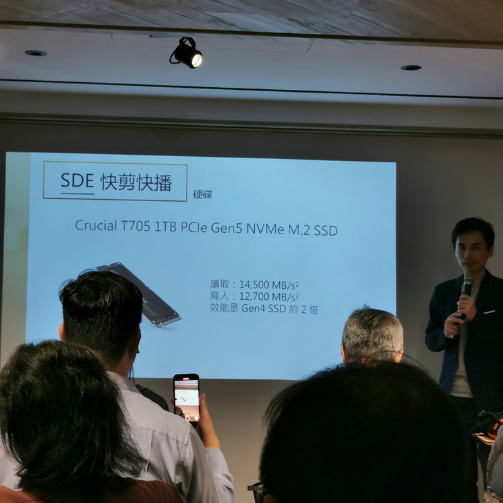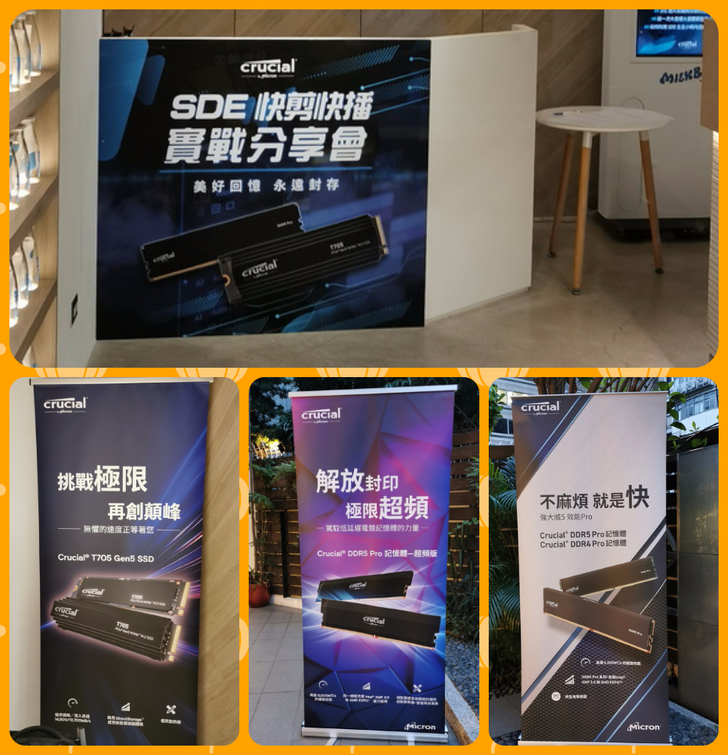 當天展示的產品,可說是 美光 Crucial 當前市面上最新最快速的都有,對於長期使用美光產品的筆者來說,看到如此多的新品,真的是流口水;更是瞭解了為何 逗點影像 跟 VACS 攝視度 都選擇使用 美光產品,因為美光產品穩定可靠又耐用,對於影像資料可說不容有失,更不用說幾個小時內就要拿出成品。