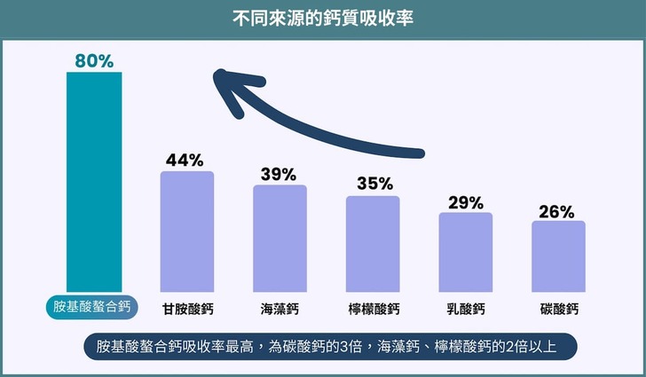 第1招 · 成分選擇胺基酸螯合鈣,吸收率最高:有些產品正面標示螯合鈣,但「成分」中卻寫甘胺酸鈣,甘胺酸鈣並不等同胺基酸螯合鈣。為避免受騙,應挑選成分中明確標示出含有胺基酸螯合鈣的產品。