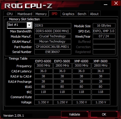 頻率DDR5-6000,電壓1.1V,時序CL36