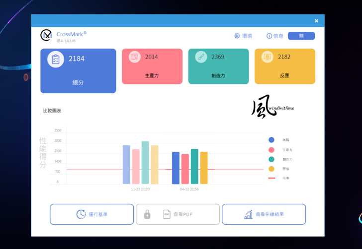 14500總體得分2184 / 生產率2014 / 創造性2369 / 反應能力 2182;