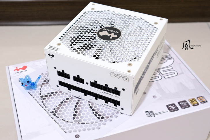 本篇PSU使用InWin P85 White Edition,第一眼最大特色當然是白色外觀,採用全模組化扁平化線材,13.5公分風扇採用液態軸承(FDB),